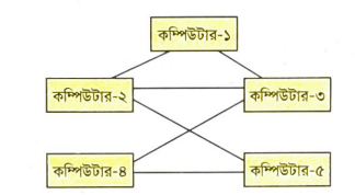গ. উদ্দীপকে চিত্র-১ এর প্রতিটি কম্পিউটার পরস্পরের সাথে সংযুক্ত হলে যে টপোলজি তৈরি হবে তা চিত্রসহ আলোচনা কর।