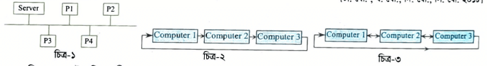 ঘ চিত্র-২ হচ্ছে রিং টপোলজি এবং চিত্র-৩ হচ্ছে মেশ টপোলজি। রিং টপোলজি ও মেশ টপোলজির মধ্যে মেশ টপোলজি বেশি সুবিধাজনক । নিচে তা বিশ্লেষণ করা হলো-