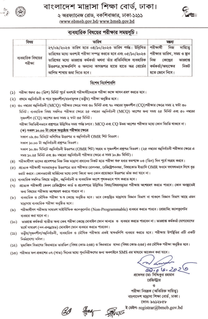 আলিম পরীক্ষার রুটিন ২০২৪