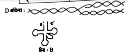 গ) উদ্দীপকের চিত্র-‘P’ দ্বারা DNA কে বোঝানো হয়েছে। নিচে DNA-র ভৌত গঠন বর্ণনা করা হলো—