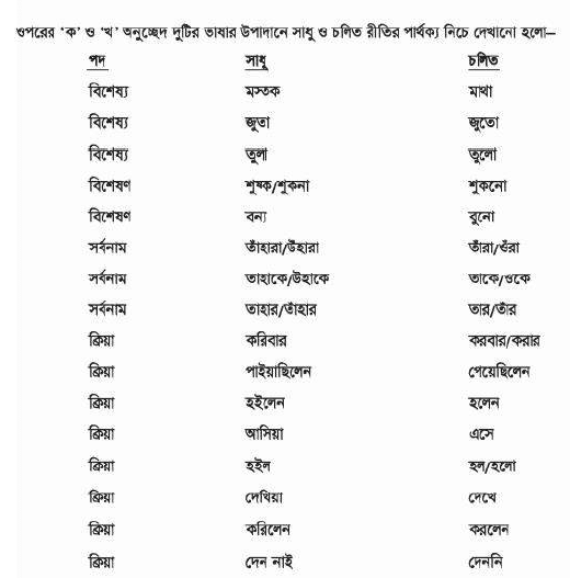 সাধু ও চলিত রীতির পার্থক্যঃ