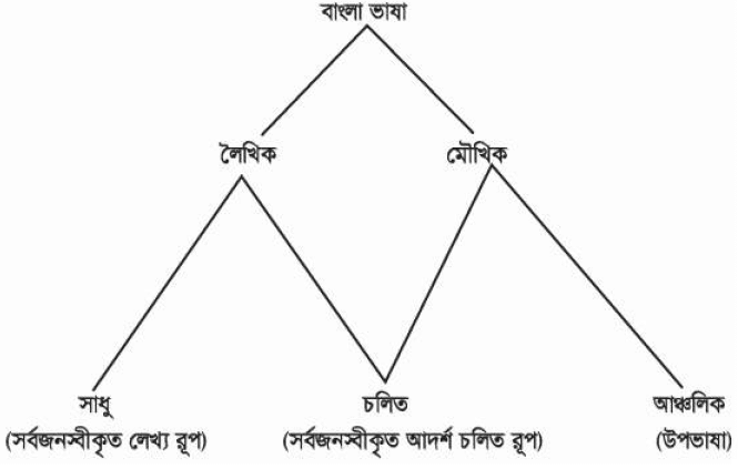 বাংলা ভাষার লৈখিক বা লেখ্য রূপেরও রয়েছে দুটি রীতি : একটি চলিত রীতি অপরটি সাধু রীতি । বাংলা ভাষার এ প্রকারভেদ বা রীতিভেদ এভাবে দেখানো যায়ঃ