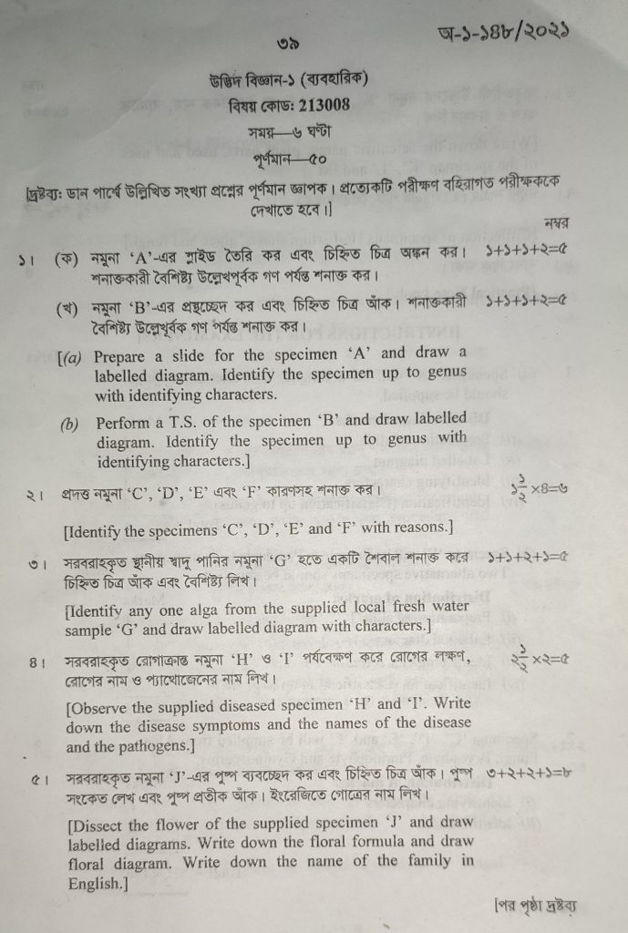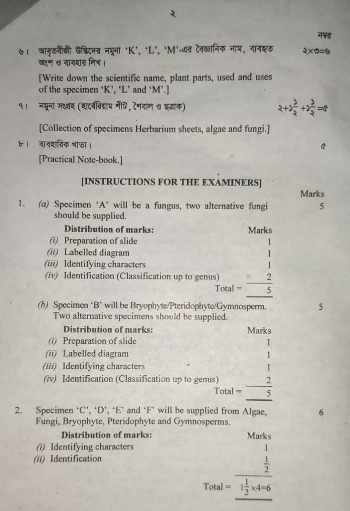 Botany First year Non Major practical here given for Honours first year Non major Botany examinees.