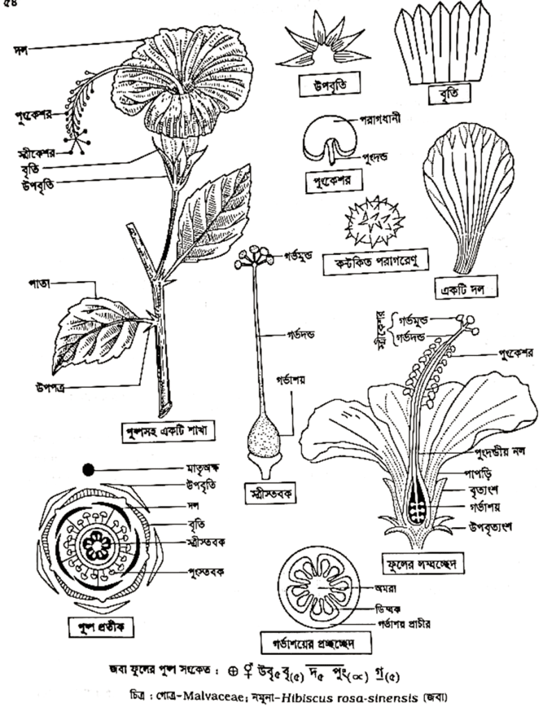 উপরােক্ত বৈশিষ্ট্যের কারণে সরবরাহকৃত নমুনাটি Malvaceae গােত্রভুক্ত।