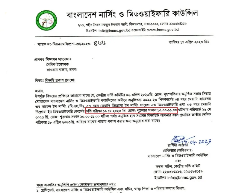 Diploma in Nursing Admission Circular 2023-24. Now HDiploma in Nursing Science and Midwifery Admission Circular 2023. Nursing & Midwifery Diploma course admission application will begin March 15, 2023, and Admission Application will begin April 13, 2023. Everyone has to apply online through mobile SMS. Students can download admit cards online. From this year, applicants have to face an MCQ written test for selection. HSC 2021 2022 pass students can apply. Government Nursing College has published the Diploma in Nursing Science & Midwifery admission notice 2023.
