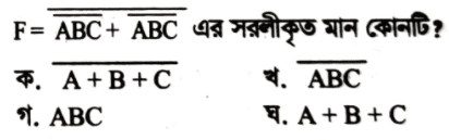 ১৪২. উদ্দীপকের আউটপুট F এর সরলীকৃত মান কোনটি?