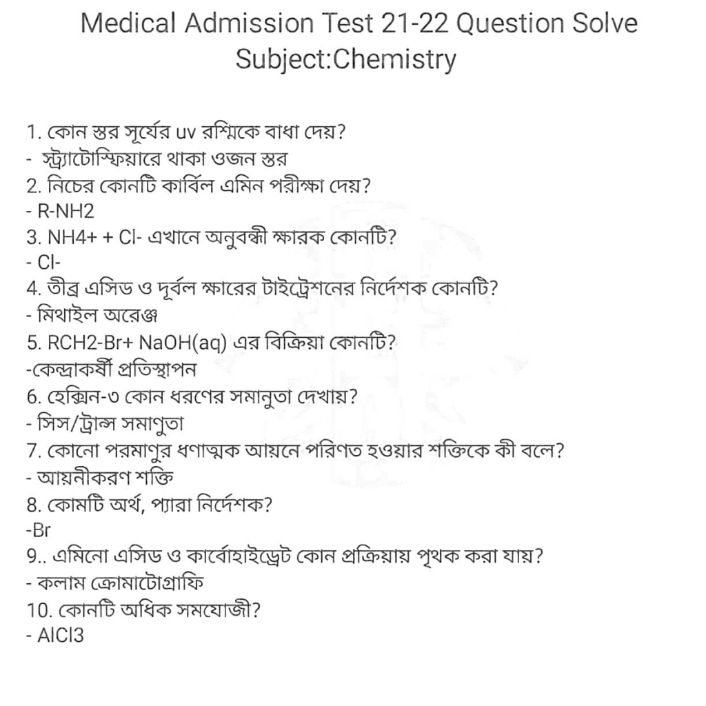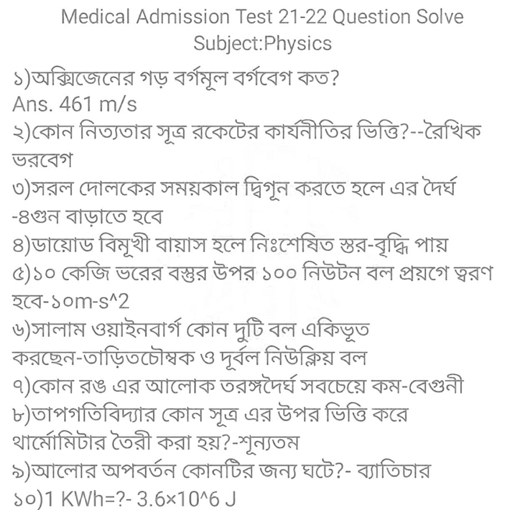Medical Admission Test Question Answer