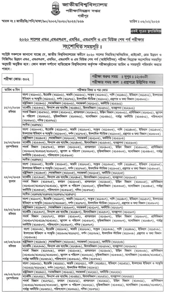 NU Masters Final Year Exam Routine 2024 / মাস্টার্স পরীক্ষার রুটিন ২০২৪ (সংশোধিত) প্রকাশিত হয়েছে। আপনারা নিচের রুটিনটি দেখুনঃ
