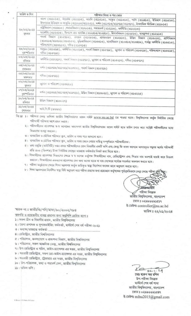 Without NU Masters Final Year Exam Routine 2024 / মাস্টার্স পরীক্ষার রুটিন ২০২৪ (সংশোধিত), you can find also